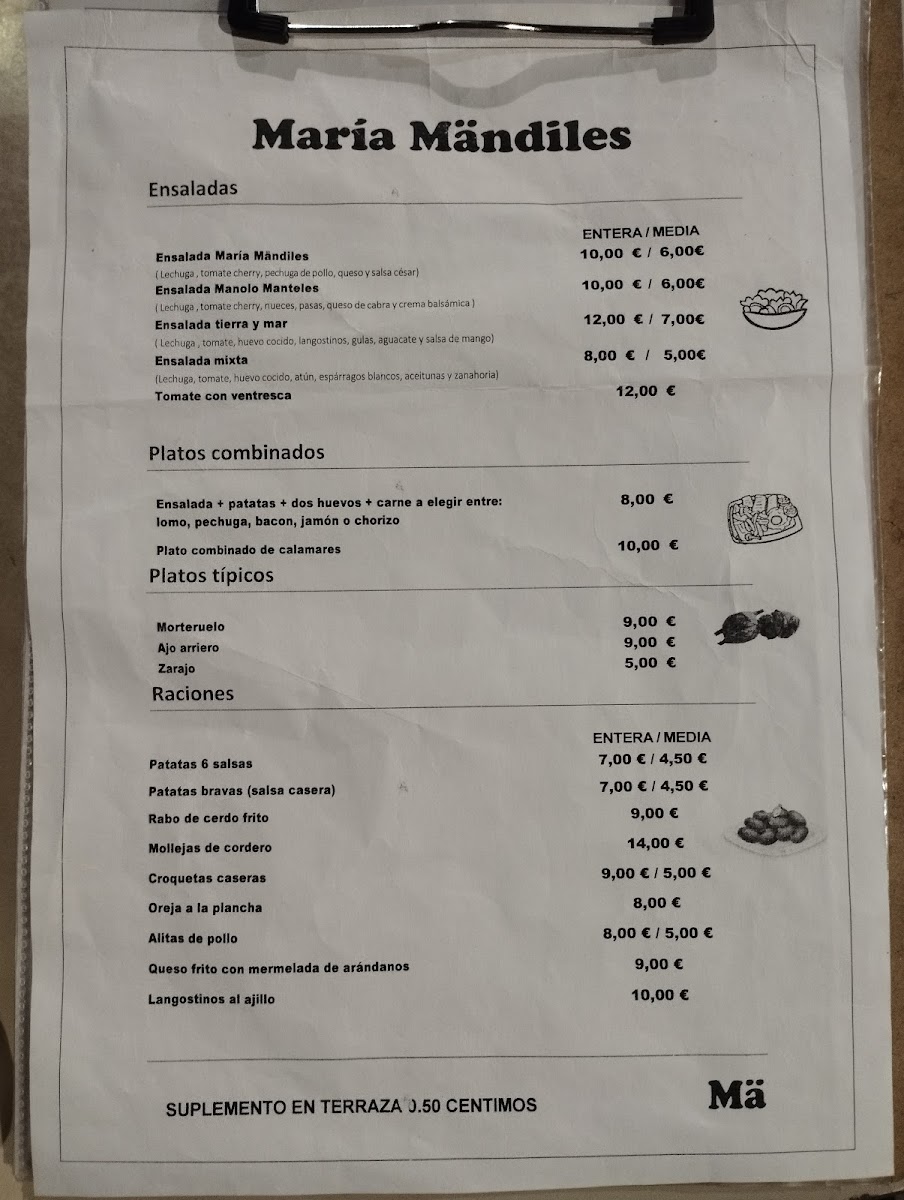 Highlights include their gigantic tostas and alpargatas, which leave patrons longing for more. The attentive staff, fluent in both Spanish and some English, ensure a welcoming experience, catering to all. While booking for prime dining might be wise, walk-ins are also warmly welcomed. Whether you're indulging in fresh seafood or traditional tapas, María Mandiles promises a memorable culinary journey that excites the palate and invites you to savor every bite.